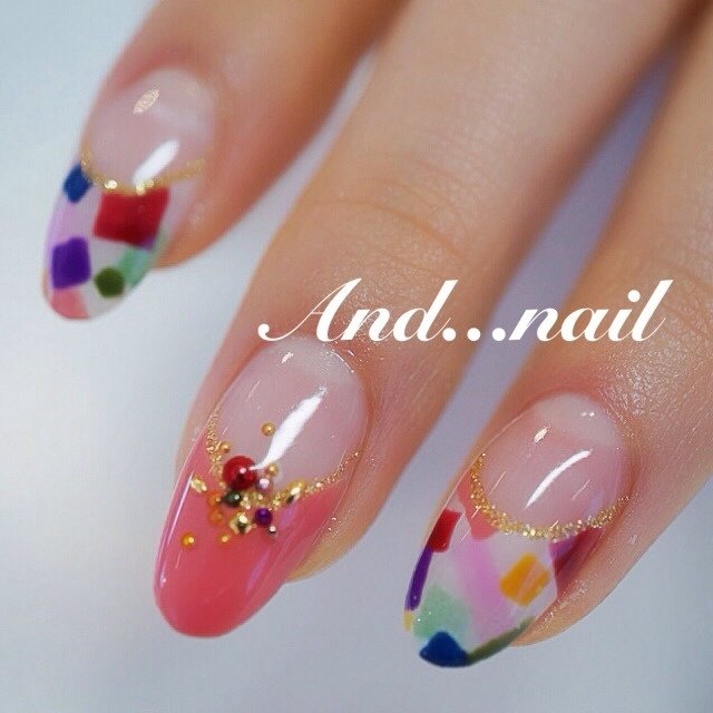 春 ハンド フレンチ カラフル ジェル 白川麻里 神戸アンドネイルのネイルデザイン No ネイルブック